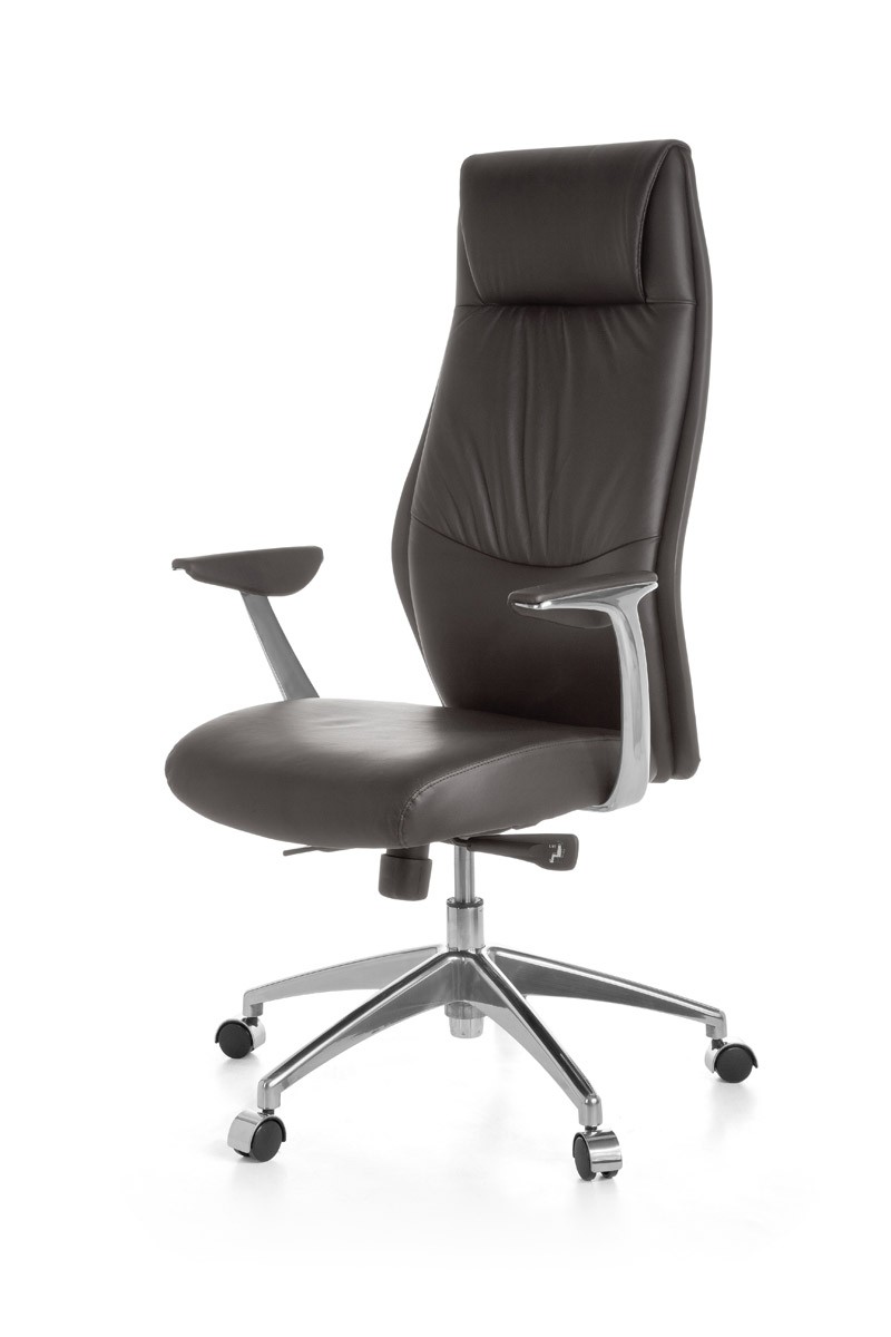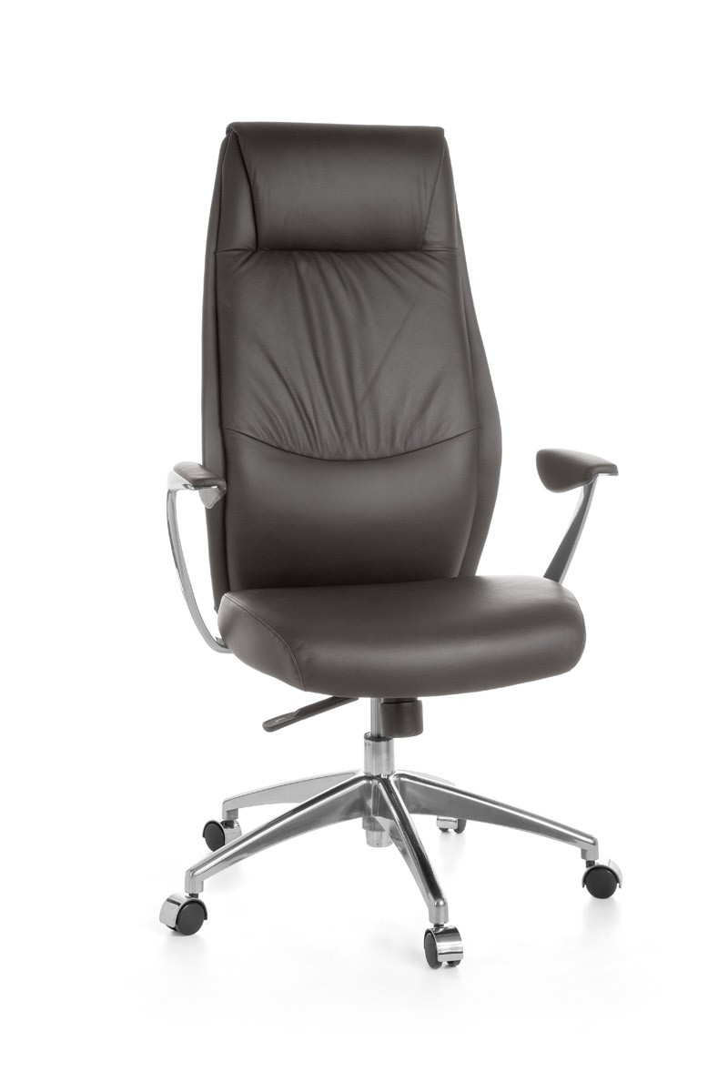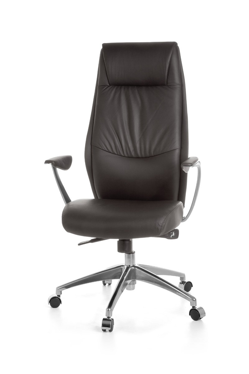 Dieser formschöne Echtleder Chefsessel hat eine extra hohe Rückenlehne mit eingearbeiteter Kopfstütze. Die Sitzhöhe und der Gaslift sind von 44 - 53 cm einstellbar. In der Höhe verstellbare Armlehnen mit weicher Soft-Pad Polsterung. Formschönes und stabiles Aluminium-Fußkreuz. Die empfohlene Sitzdauer beträgt acht Stunden (+ mehr Stunden). Der Polsterbezug besteht aus besonders weichem Echtleder. Die stufenlose Any-Look Synchronmechanik besitzt ergonomisch angeordnete Bedienelemente, der Neigungswinkel der Rückenlehne ist stufenlos arretierbar. Die Rückenlehnenneigung mit Gegendruckregulierung ist individuell und stufenlos auf das Körpergewicht einstellbar.Sitzfläche und Vorderseite der Rückenlehne: echtes Leder - Unterseite der Sitzfläche & Rückseite der Rückenlehne: Oberfläche 100 % Polyurethan, Grundgewebe 100 % Baumwolle Montage des Produkts: - PORTO wird zerlegt geliefert - Leicht verständliche Aufbauanleitung wird mitgeliefert - Zügige Montage dank gut durchdachter Konstruktion