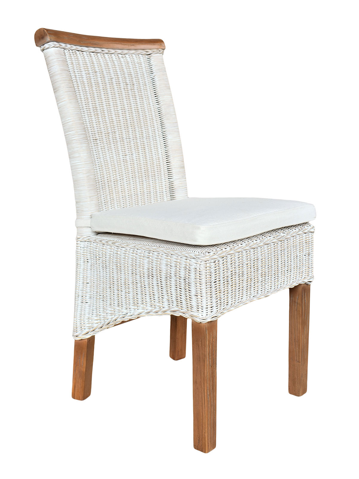Rattanstuhl für Esszimmer oder Outdoor hochwertig verarbeitet in der Farbe white washed Esszimmer-Stuhl mit robuster Bauweise für hohe Stabilität und Festigkeit Stuhl mit hoher Strapazierfähigkeit und Gebrauchseigenschaften (Tragkraft ca. 200 kg) aus 100 % FSC-zertifiziertem Naturrattan für 100 % Nachhaltigkeit und natürliches Wohnen Optional mit Sitzkissen mit Antirutschvliesausrüstung in weiß Die Rattanstühle Cardine sind hochwertig verarbeitete Stühle für Esszimmer oder Wintergarten aus Naturrattan. Ihr besonders gutes Preis-Leistungs-Verhältnis und die hochwertige, robuste Bauweise zeichnen diese Rattanstühle aus. Durch die schön straff geflochtenen Rattanruten wird eine Stabilität und Festigkeit erzeugt. Alle Rundungen und Übergänge sind formschön und mit Liebe zum Detail verarbeitet. Die Rattanstühle zeichnen sich durch festen Stand und angenehmen Sitzkomfort aus. Passend zu den Stühlen erhalten Sie die Sitzkissen in der Farbe prairie brown oder leinen weiß mit Antirutschvliesausrüstung. Durch die hochwertige Verarbeitung werden diese Rattanstühle über viele Jahre hinweg Ihre Räumlichkeiten verschönern.