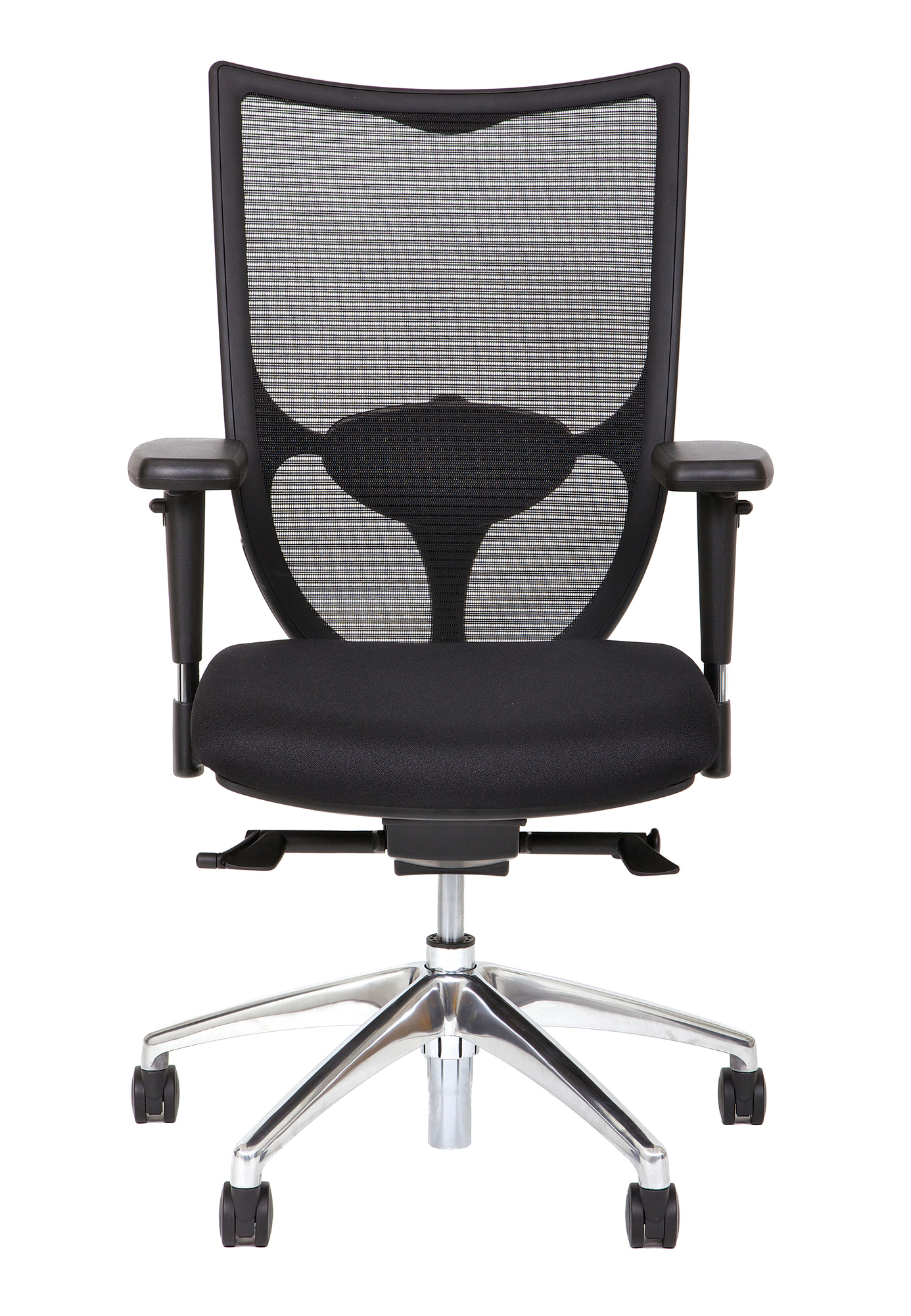 Beim NetStar 77 bleibt kein Wunsch offen: seine hohe Belastbarkeit bis 150 kg. wird ergänzt durch unzählige Einstellmöglichkeiten wie eine höhen- und tiefenverstellbare Lordosenstütze, eine zusätzliche Sitztiefenverstellung (10 cm.) und 3D-Armlehnen (höhen-, breiten- und tiefenverstellbar). Außerdem verfügt der Netzstuhl mit atmungsaktiver Netzrückenlehne stanndardmäßig über ein poliertes Aluminiumgestell mit verchromter Gasfeder und Multifunktionsrollen. Modernes Design verbindet sich mit der Donati Tension Synchronmechanik zu höchster Funktionalität. Dieser komfortabel gepolsterte Bürostuhl ermöglicht ermüdungsfreies Sitzen, auch bei hoher Sitzdauer. Optional (gegen Aufpreis): Kopfstütze in schwarzem Stoff