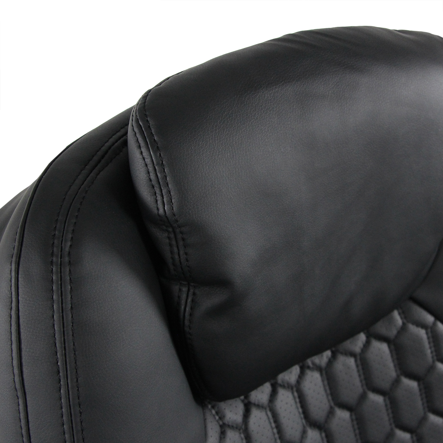 - Die integrierte Kopfstütze, sowie die höhenverstellbaren Armlehnen mit Polsterung sorgen für zusätzlichen Komfort.