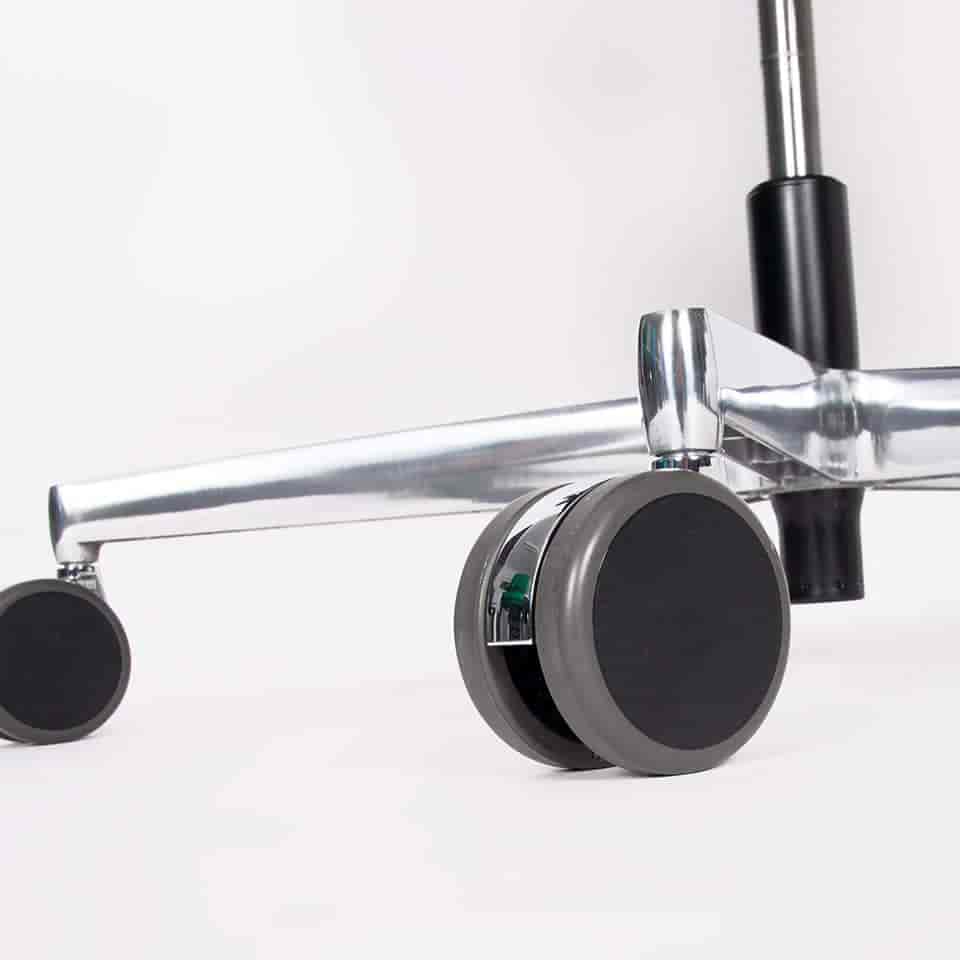 - inkl. Universal-Doppel-Lenkrollen Ø 75 mm (lastabhängig gebremst), extrem belastbar, Aludruckguss – einsetzbar für alle Böden