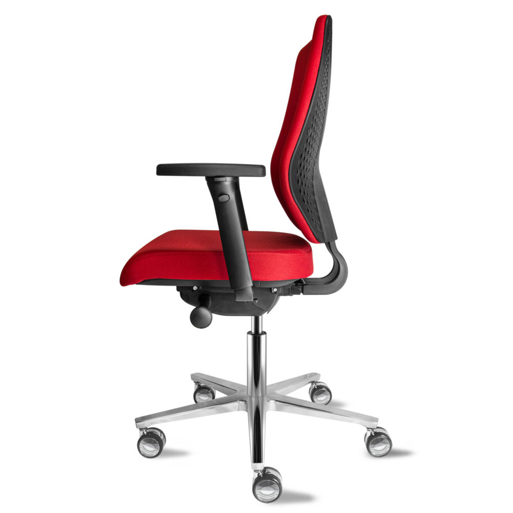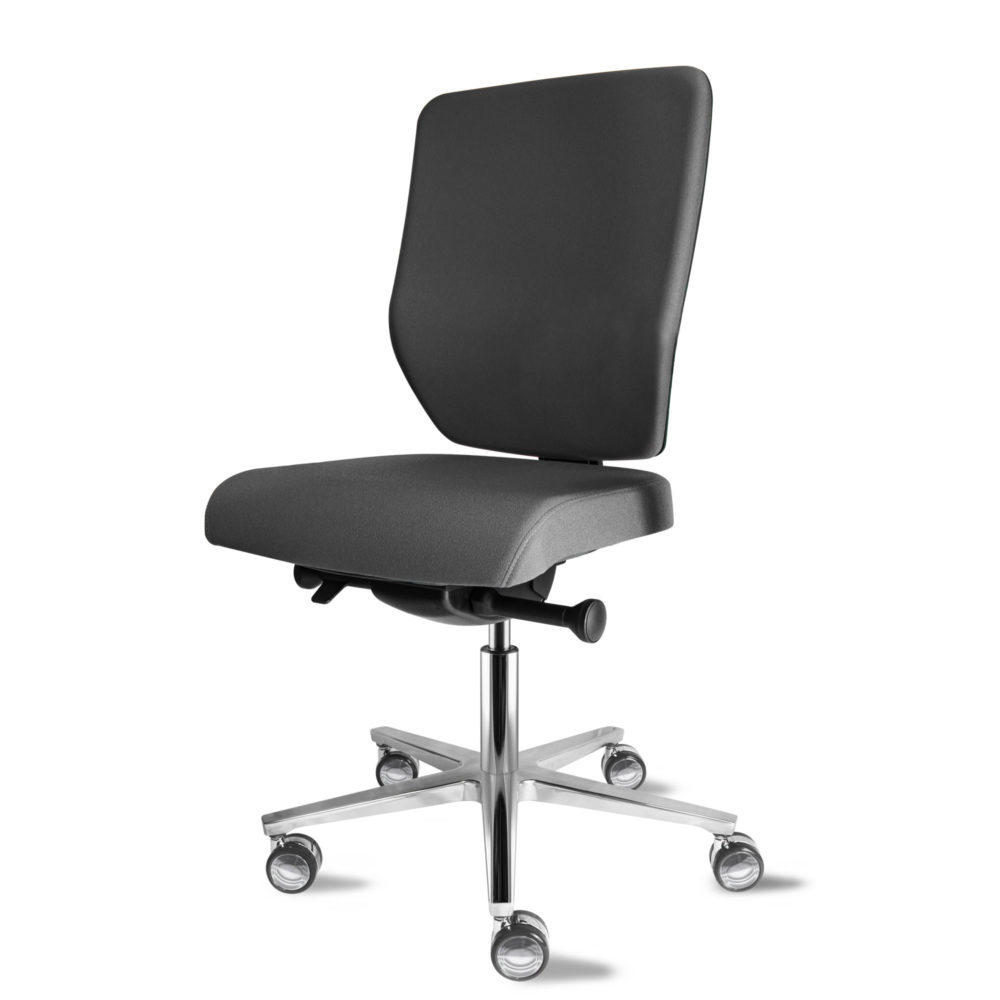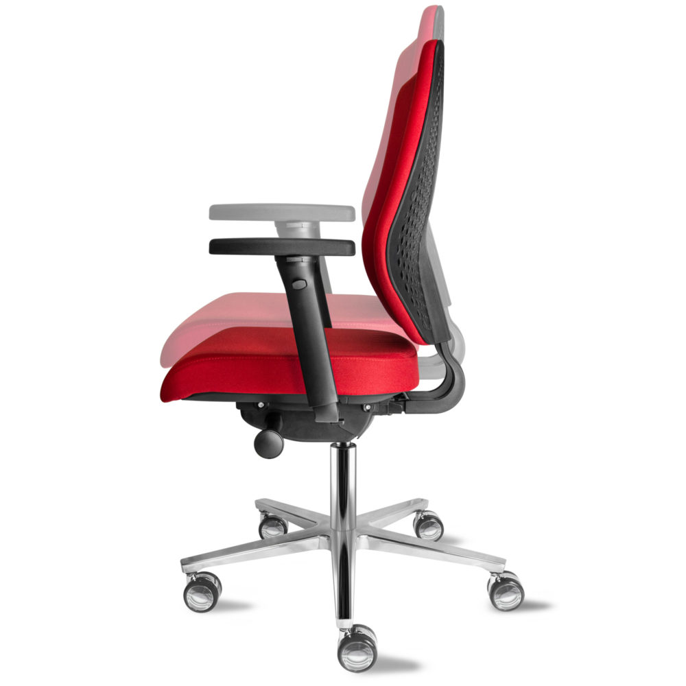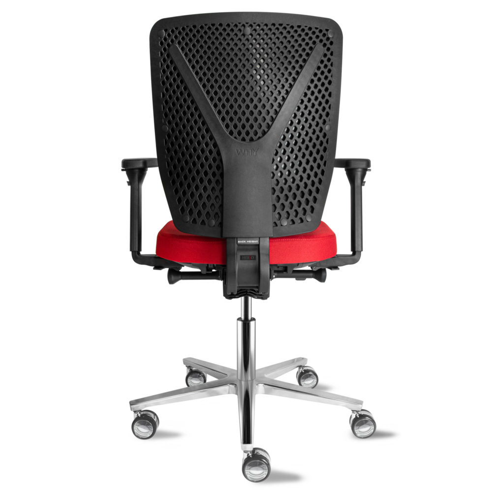 Der Bürostuhl WHY! aus der deutschen Manufaktur HerSo ist nicht nur hoch belastbar bis 250 kg. sondern erfüllt auch alle Ansprüche an einen ergonomischen Drehstuhl, der dynamisches Sitzen fördert. Es besitzt eine Synchron-Mechanik, eine Sitztiefenverstellung und eine flexible 3D-Rückenlehne mit integrierter Lordosenunterstützung. Per Schnellspanner können die Armlehnen in der Breite verstellt werden, die stufenlose Sitzhöhenverstellung verfügt über eine komfortable Tiefenfederung. Er verbindet Robustheit mit dem Sitzkomfort und der Flexibilität eines ergonomischen und rückenschonenden Bürostuhls. Optional mit höhen- und breitenverstellbaren Armlehnen und per Luftkammersystem verstellbarer Lordosenstütze.
