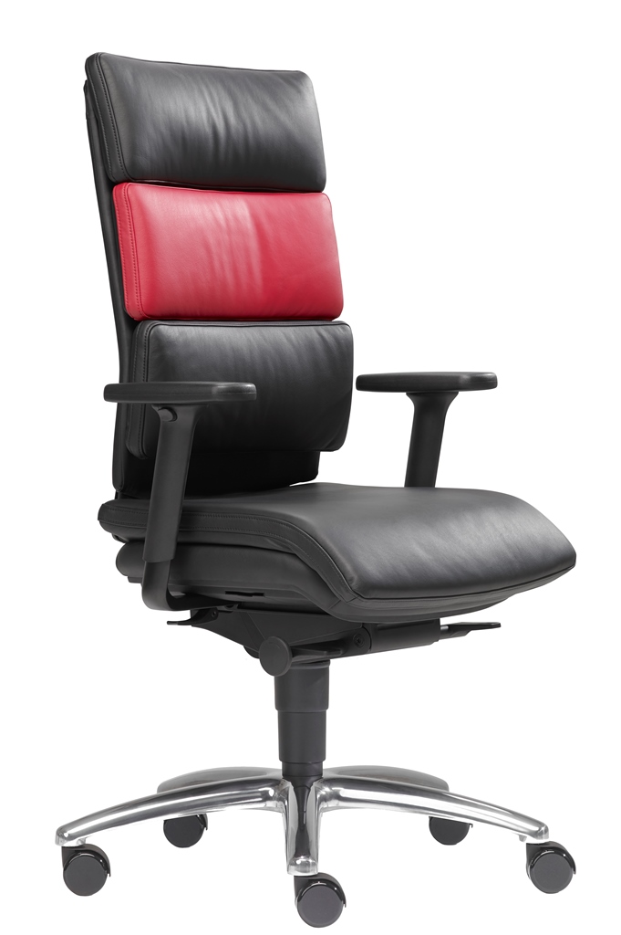 • Rückenlehne mit ergonomischer Stützpolsterung, integrierter Lordosenstütze und 3-Zonen-Kissensteppung