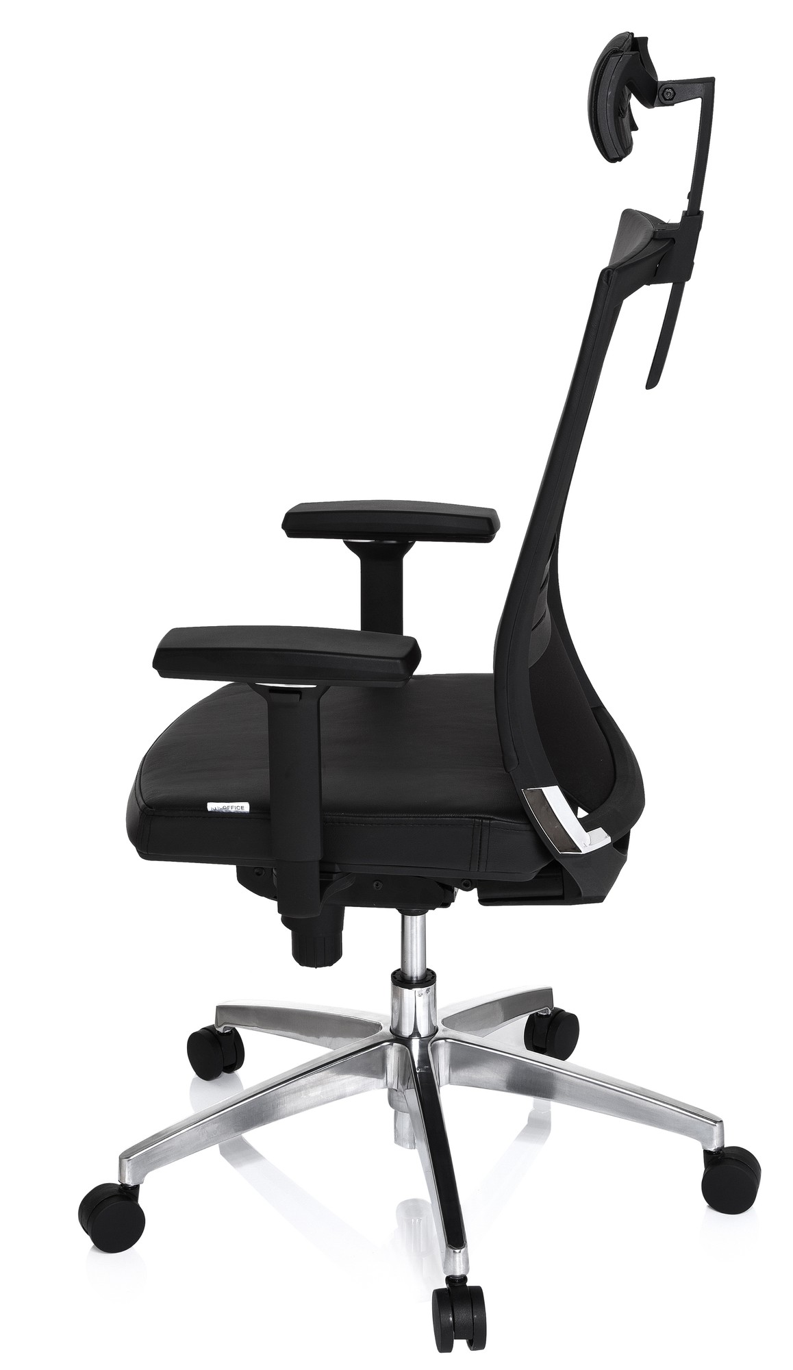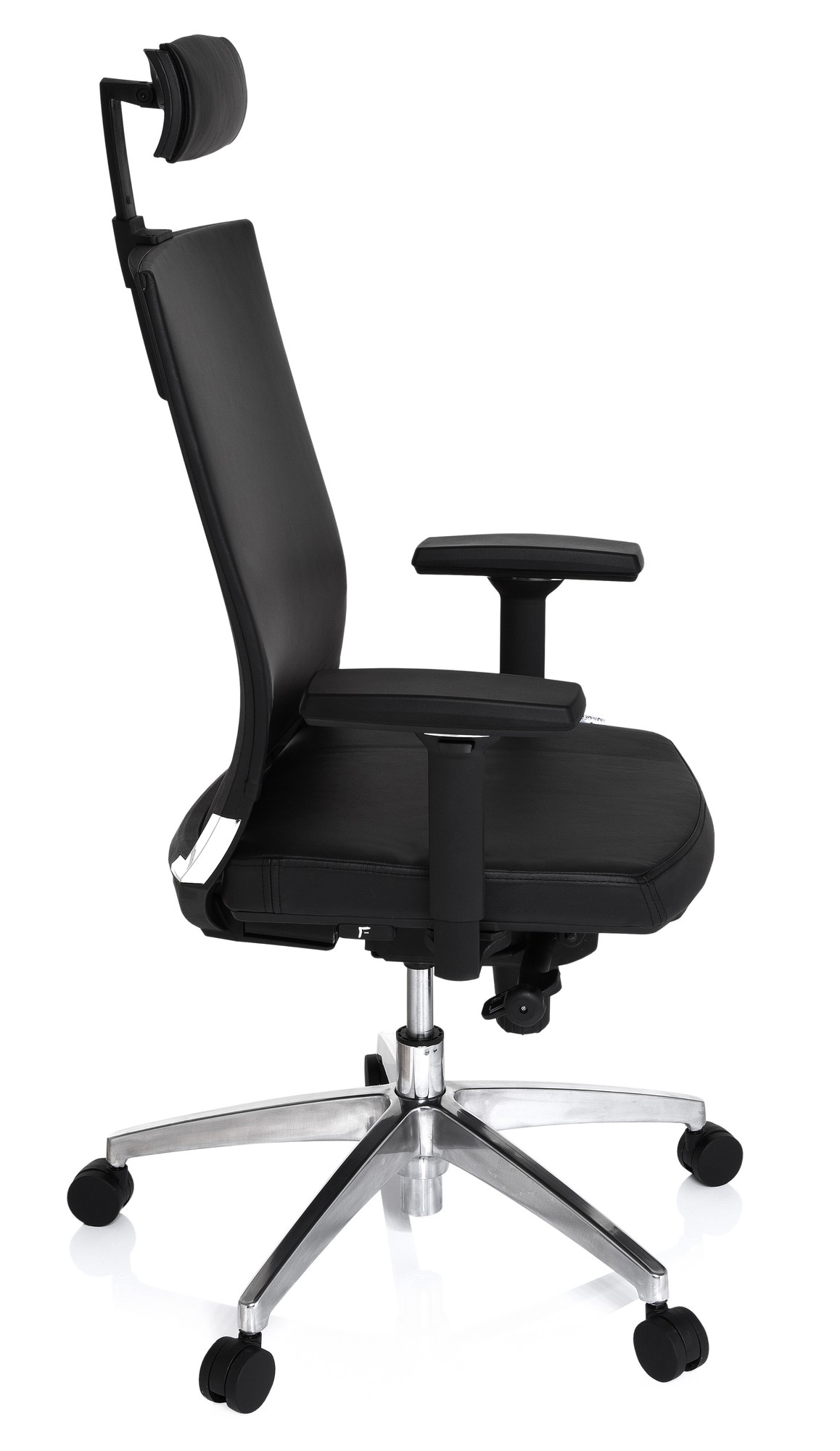 Der hochwertig verarbeitete Profi-Chefsessel bietet viele tolle Features. Darunter z.B. eine einstellbare Lendenwirbelstütze die eine angenehme Sitzhaltung ermöglicht. Bei diesem Stuhl sind sowohl Rückenlehne als auch die Sitzfläche mit elegantem Leder bezogen. Inklusive höhenverstellbarer Armlehnen und Kopfstütze. Durch die höhere Rückenlehne des PORTO MAX HIGH eignet sich dieser besonders für große Personen bis 1,95m.