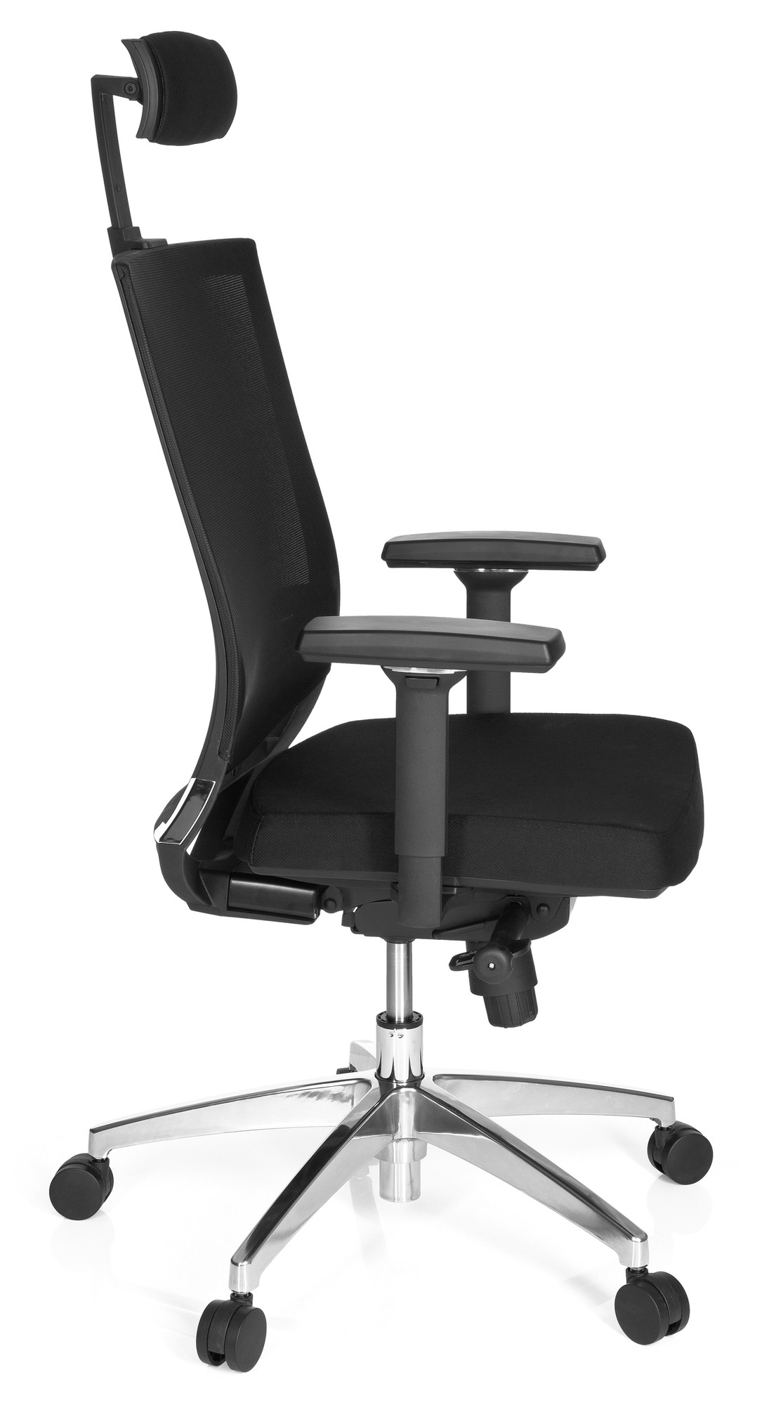 Der Chefsessel Porto Max High kommt mit einstellbarer Lendenwirbelstütze für höchsten Sitzkomfort. Bezug aus atmungsaktivem Netzstoff. Inklusive höhenverstellbarer Armlehnen, Kopfstütze und stabilem Aluminium - Designer - Fußkreuz. Durch die höhere Rückenlehne ist der PORTO MAX HIGH besonders für Personen bis 1,95m geeignet.