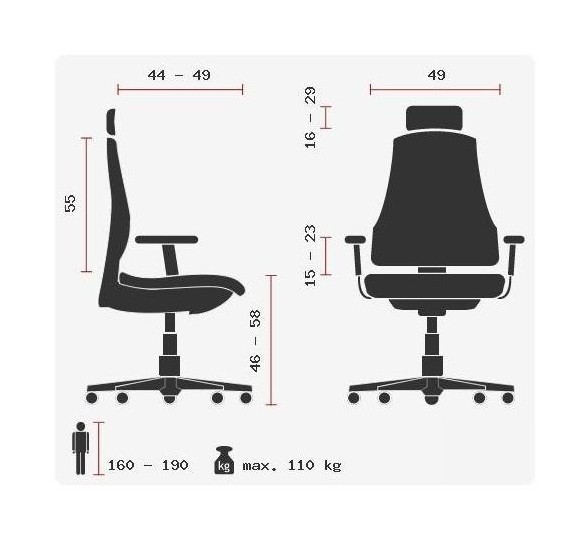 • Stufenlos höhenverstellbare Kopfstütze, individuell in Neigung und Höhe einstellbar