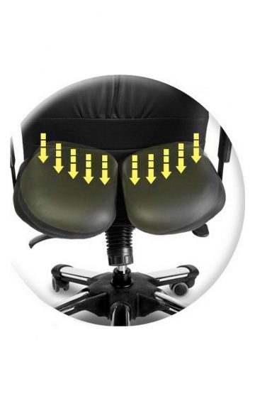 Durch die zweiteilige Sitzfläche des Harastuhl CAE entlastet dieser weitaus intensiver das Becken und den gesamten Rumpfbereich des Nutzers. Dieser Bürostuhl ist wie geschaffen für große und schwere Menschen. Die Rückenlehne ist mit 85 Zentimeter ungewöhnlich hoch, die Sitzfläche 50 Zentimeter breit und 50 Zentimeter tief. Der Rahmen ist sehr stabil gebaut, der Stuhl ist vom Hersteller bis 120 Kilogramm freigegeben. Die ergonomische Sitzhöhe hat einen ungewöhnlich großen Verstellbereich von 43 bis zu 60 Zentimeter.