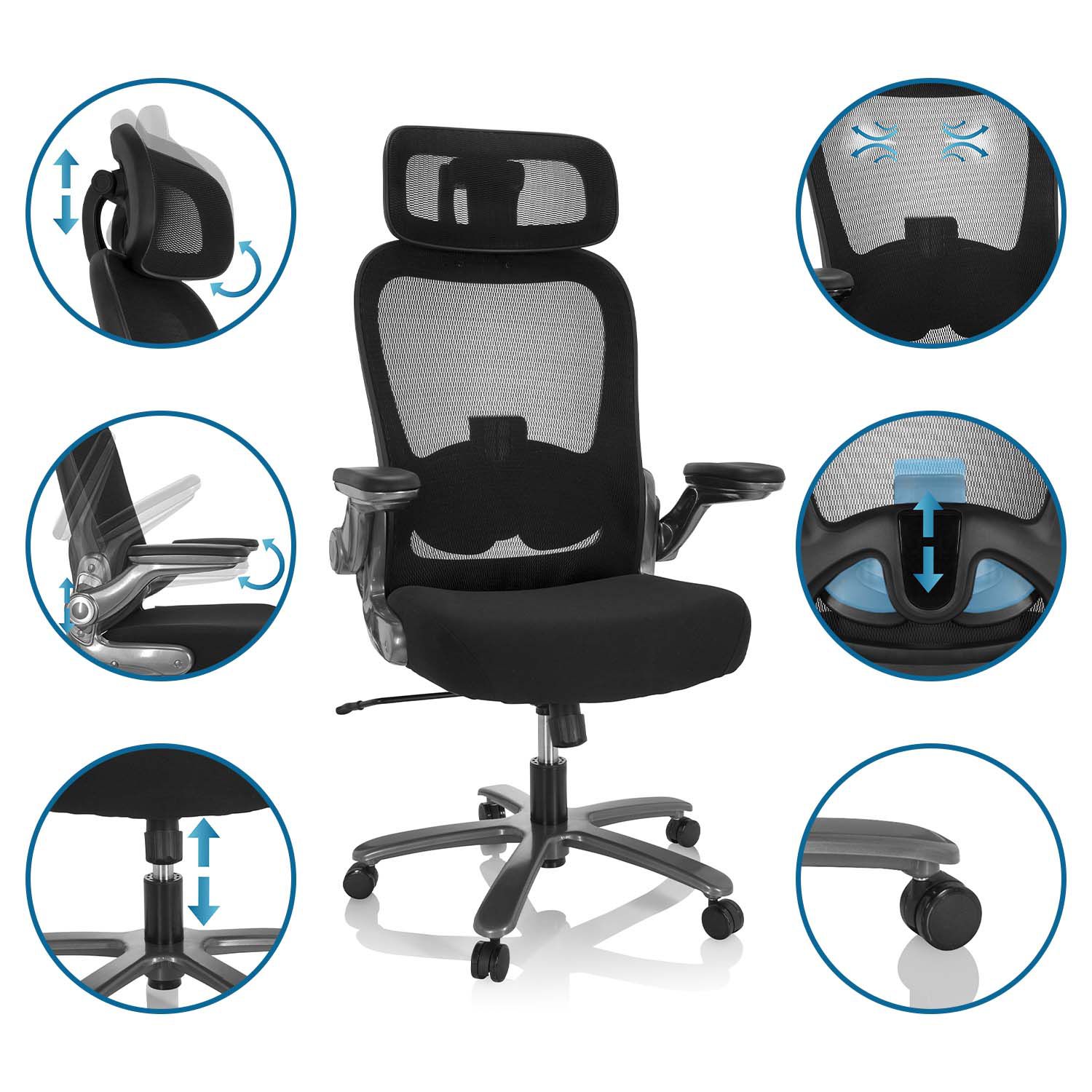 Als großer und/oder schwerer Mensch hat man häufig das Problem keinen geeigneten Bürostuhl zu finden, der einem dann auch noch gefällt. Der INSTRUCTOR PRO XXL beendet Ihre Suche. Er bietet ein schickes Aussehen gepaart mit einer extra breiten Kopfstütze und praktisch wegklappbaren Armlehnen mit Softpad-Auflage. Der Stuhl ist geeignet bis 210cm Körpergröße. Die Sitzfläche bietet genügen Platz ohne auf Komfort verzichten zu müssen. Eine Lordosenstütze ist auch integriert, damit Sie auch einen langen Arbeitsstag ausgeruht und fit beenden können. Die maximale Traglast des Stuhls liegt bei 220kg. Dank der angenehmen Polsterung sitzen Sie jederzeit bequem. Die ergonomisch geformte Rückenlehne ist mit Netzstoff bespannt, der nicht nur luftig ist sondern auch die richtige Sitzhaltung unterstützt. Der Stuhl ist in zwei Farbvarianten erhältlich, Titan und Schwarz.