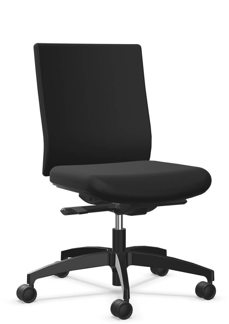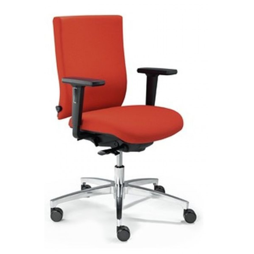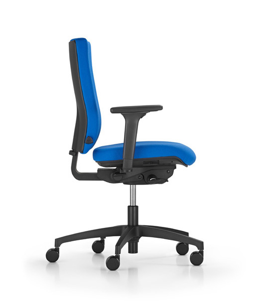 Optional mit Armlehnen, Alu-Fußkreuz, Hartbodenrollen und verstellbarer Lumbalstütze.