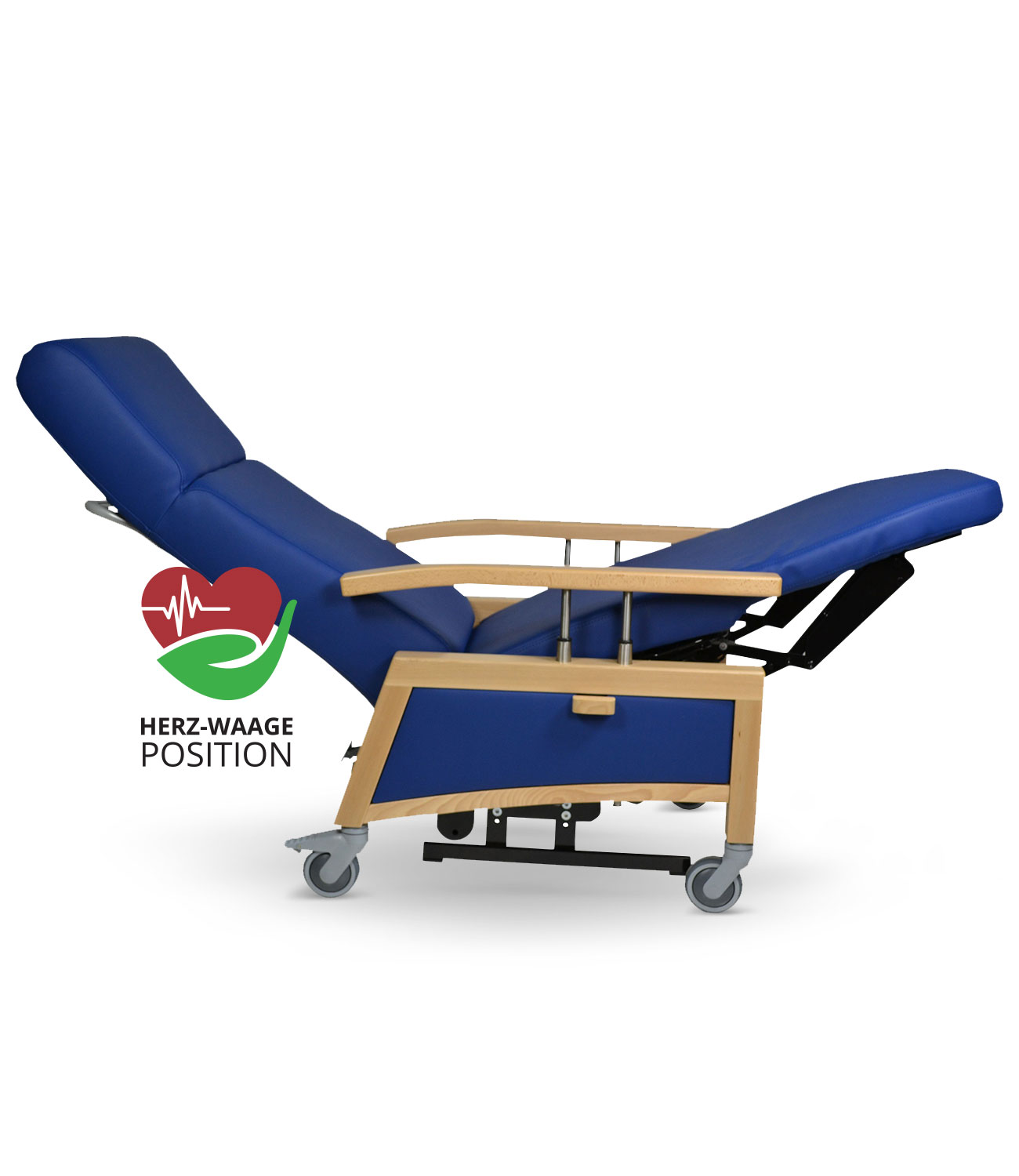 Der Pflegesessel Berlin GET UP mobil Plus ist extra für die häusliche sowie für die professionelle Pflege entwickelt. Durch die drei wählbaren Holzfarben und den vielen Arten an Bezugsmaterial und Dekoren in höchster Qualität lässt der Sessel Berlin GET UP mobil Plus keine Wünsche offen und passt sich jedem Wohn- und Heimzimmer an. Durch die in der Höhe leicht verstellbaren Armlehnen, durch die sich ein Umsetzen viel leichter gestaltet, den Schiebegriff an der Rückenlehne und die vier großen Rollen, von denen die beiden hinteren mit einer Feststellbremse versehen sind, machen den Sessel multifunktionell. Höchster Komfort und beste Mobilität wird durch die einfache Verstellung in die Liege- oder Relaxposition ermöglicht. Dabei sind Rückenteil und Beinteil getrennt voneinander verstellbar. So ist bequemes Sitzen oder Liegen über mehrere Stunden hinweg kein Problem. Das Aufstehen danach erfolgt leicht und bequem mit der Liftfunktion des Sessels, die per Knopfdruck zu steuern ist. Die Verstellung erfolgt elektrisch, optional auch mit Akku erhältlich.