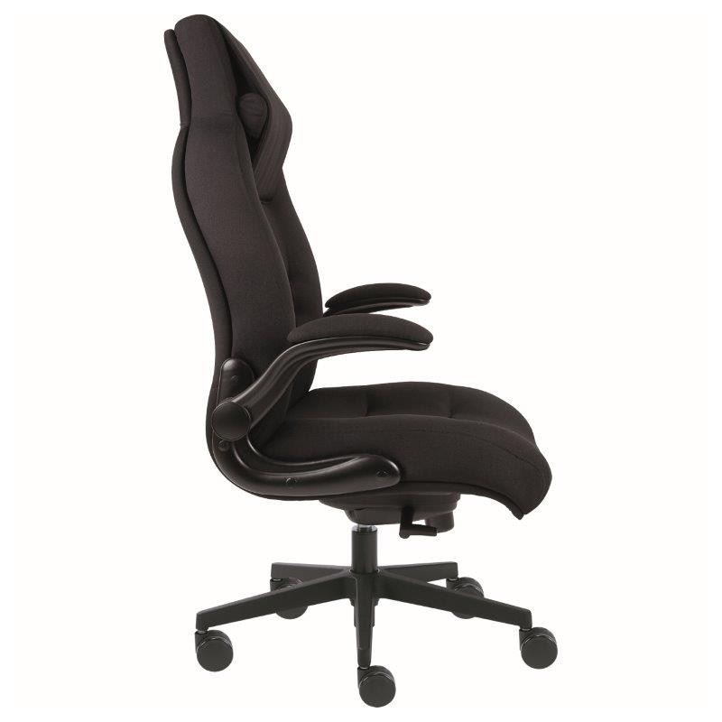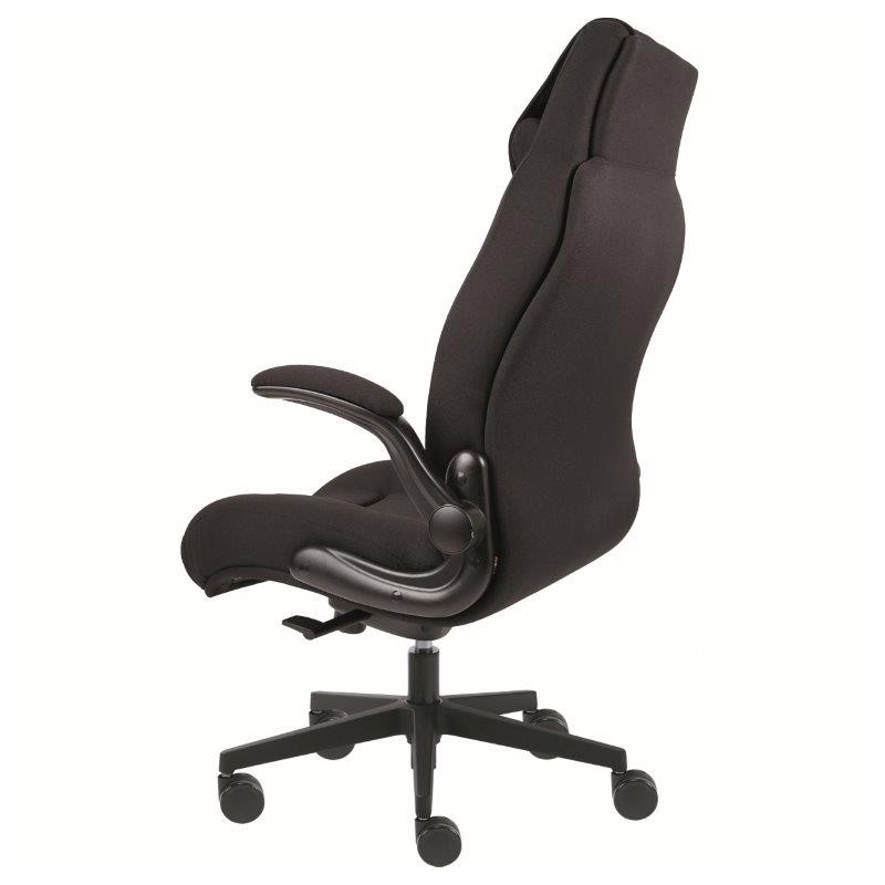 Sehr robuster und komfortabler, voll gepolsterter Sessel für den 24-Stunden-Betrieb. Er besitzt klappbare Armlehnen und eine höhenverstellbare Kopfstütze. Beim Dispos ist die Sitzschale aus zehnschichtigem, gebogenen Sperrholz gefertigt, die reich gepolstert und genäht ist, der Bezugsstoff Bondai hat eine Scheuerbeständigkeit von 150 000 Martindale. Zudem ist eine verstärkte Gasfeder montiert. Ergonomisch ist hier die Form des Sitzkissens und die Wölbung der Rückenlehne, sowie die einstellbare Nackenrolle. Der Sessel verfügt über eine Wippmechanik, die ein entspanntes Zurücklehnen ermöglicht und die Bandscheiben entlastet. Er ist bis 200 kg. belastbar. Der Stuhl ist mit Teppichbodenrollen ausgestattet, unter Optionen können Hartbodenrollen und ein Alu-Fußkreuz gewählt werden.