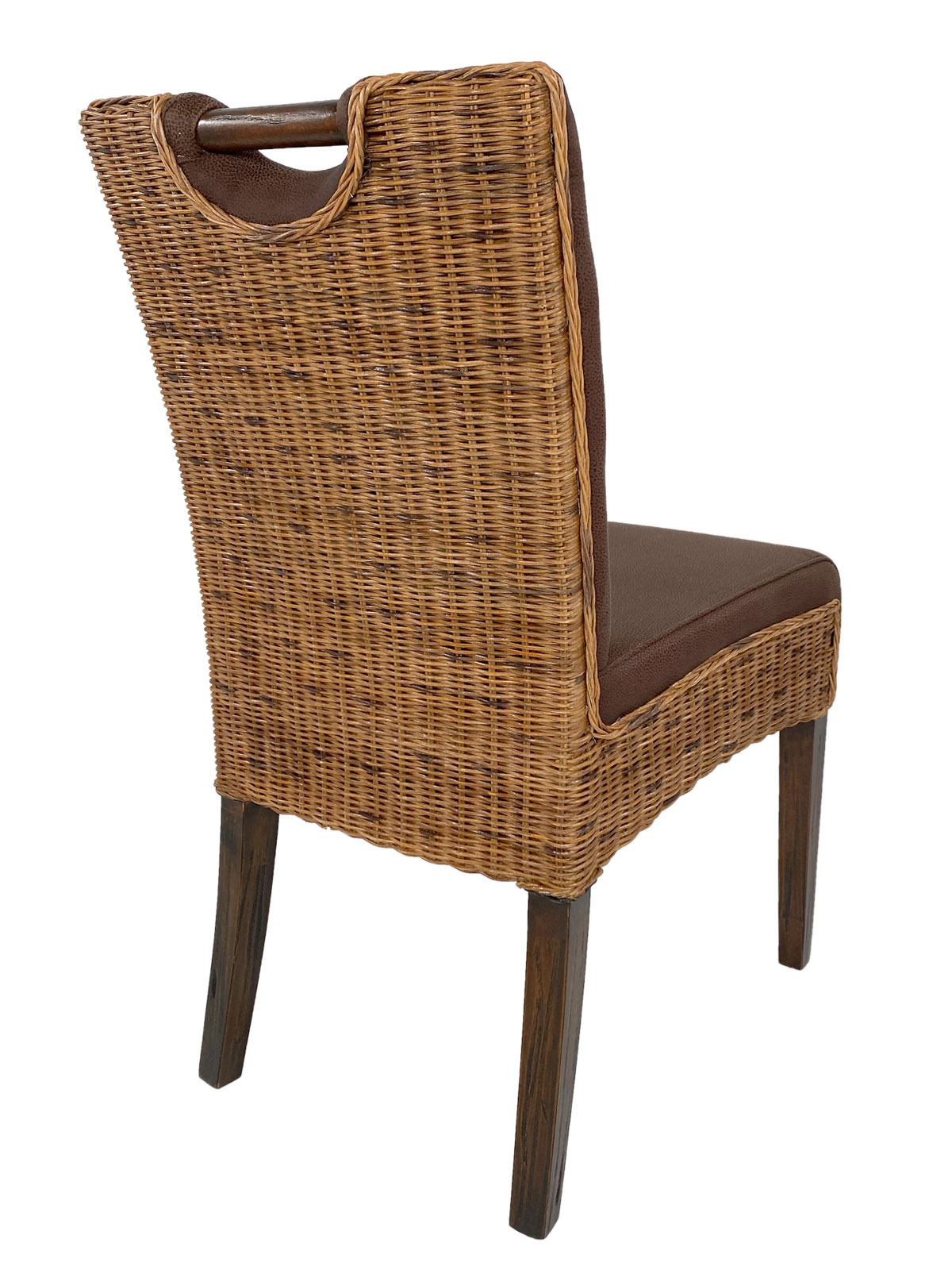 Rattanstuhl modern und trendig von Hand hochwertig verarbeitet mit Festpolster Sitz- und Rückenkissen im Landhausstil Esszimmer Stuhl aus Naturrattan mit extrahoher und eleganter Rückenlehne bis 150 kg belastbar Beine aus massivem Mangoholz Rattanstuhl mit angenehmem Sitzkomfort und optimaler Sitzhöhe sowie unempfindlichem Bezugsstoff Polsterstuhl - Bezugsstoff Mikrofaser in Wildlederoptik - jeder Stuhl ist ein Unikat (keine Maschinenfertigung!) Der Antonio Rattanstuhl ist ein hochwertiger Stuhl, der aus Naturrattan gefertigt und manuell verarbeitet wird. Es ist ein sehr bequemer Stuhl mit einer hochwertigen und robusten Bauweise. Der Stuhl hat eine extra hohe Rückenlehne und feste Sitz- und Rückenpolster. Die straff geflochtenen Rattanruten sorgen für hohe Stabilität, sodass er eine Tragfähigkeit von bis zu 150 kg aufweist. Rundungen und Übergänge sind sehr schön gestaltet und wurden sorgfältig geflochten. Es bietet ein sehr gutes Preis-Leistungs-Verhältnis und ist daher ideal für Esszimmer, Gästezimmer, Jugendzimmer oder Wintergarten. Der Stuhl passt perfekt zu Rattantischen, aber auch zu Massivholztischen in Akazie, Buche, Eiche, Seesham, Teak und Pinie. Achtung! Diese Stühle werden von Hand produziert und sind nie ganz gleich. Jedes Stück ist ein Unikat!