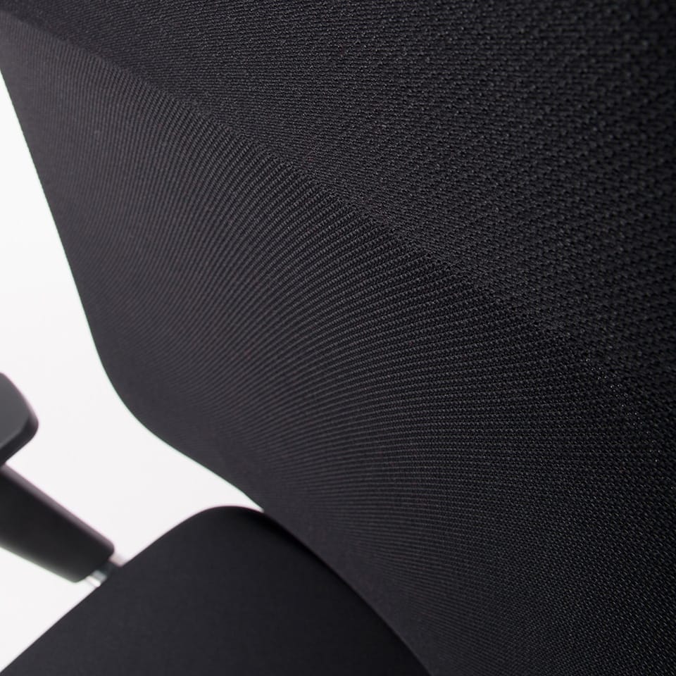 - Hohe Segment-Rückenlehne mit Aufsatz, integrierter Lordosenstütze und flexiblem Schulterbereich